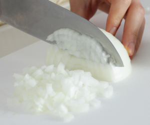 1. 新玉ねぎを薄くスライスする